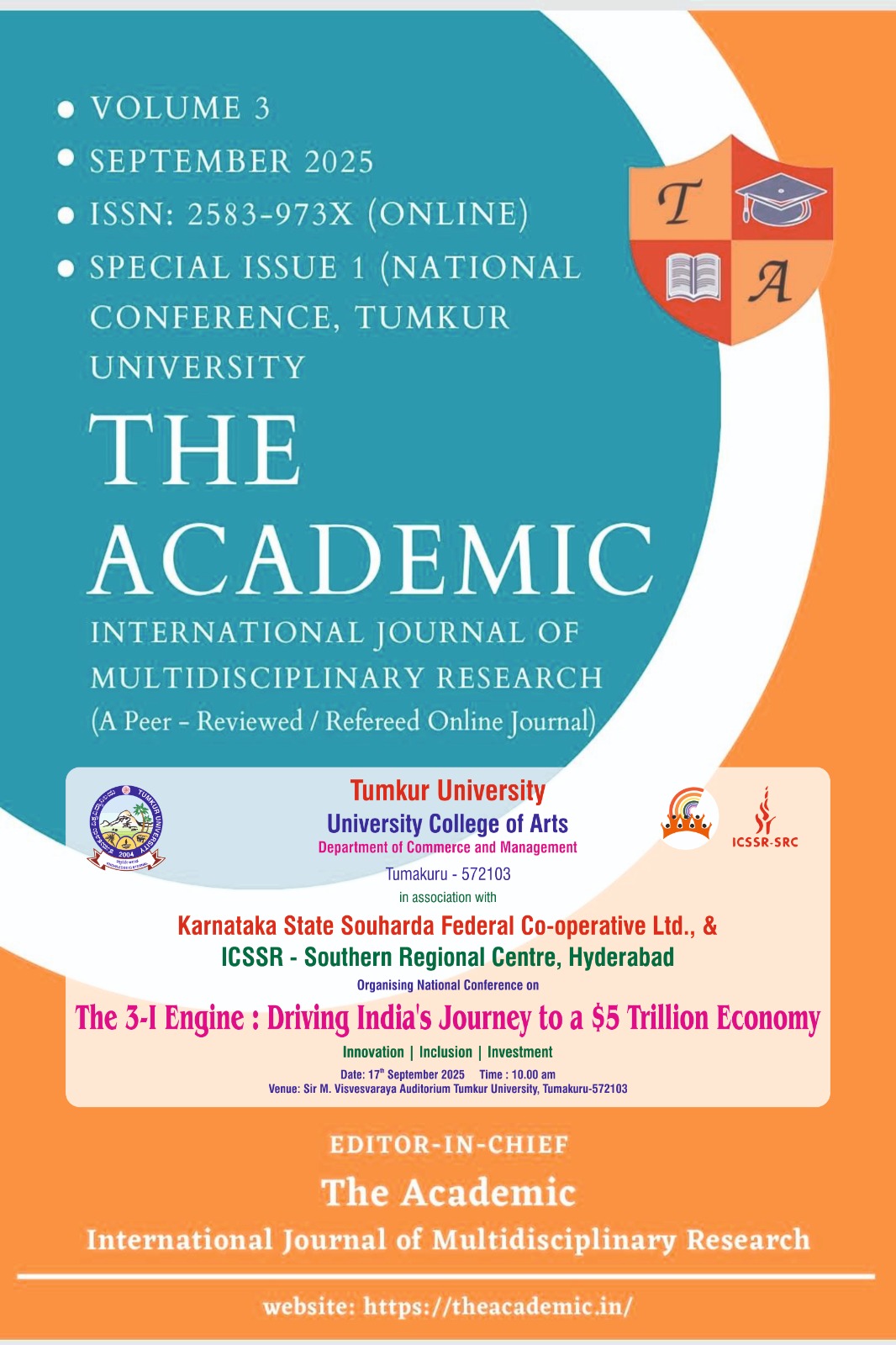 Volume 3, Special Issue 1, September 2025 (National Conference, Tumkur University, Tumkur) The Academic – International Journal of Multidisciplinary Research (A Peer Reviewed Refereed Online Journal) Download Front Page Download Table of Contents Download Certificates Volume 3, Special Issue 1, September 2025 (National Conference, Tumkur University, Tumkur) Publication is coming Soon